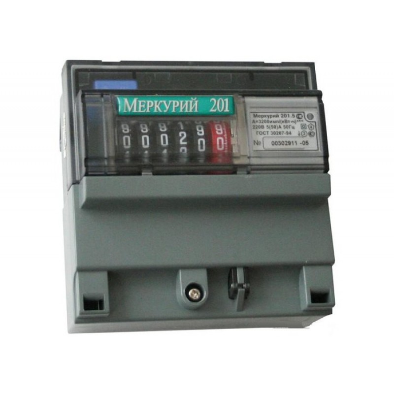 Счетчик Меркурий 201.5 1ф 5-60А 220В на динрейку ОУ