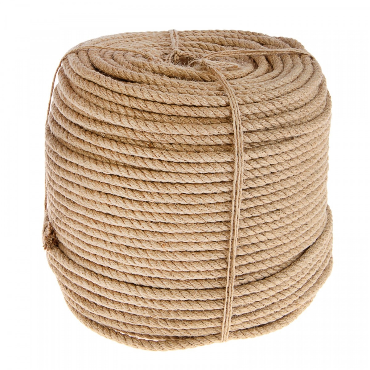 - желтый цвет джута гармонично смотрится на фоне свежей древесины, его оттенок почти полностью сливается с бревнами и не выделяется визуально.