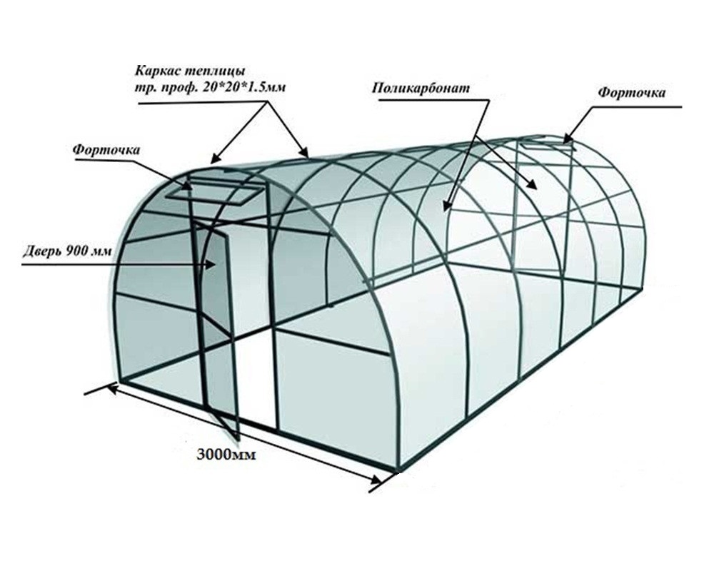 Теплица "Удачная Эконом ОЦ" 4х3х2 шаг 0,67м (основание 20х20, дуги 20х20)