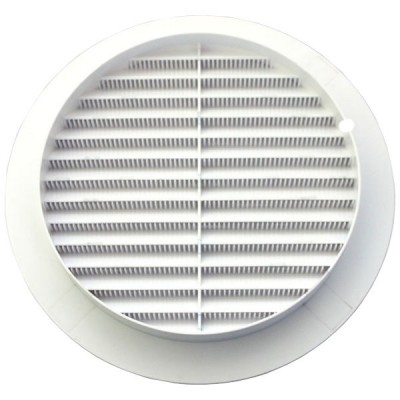 Решетка вентиляционная круглая с пластиковой сеткой D130 вытяжная АБС с фланцем D100